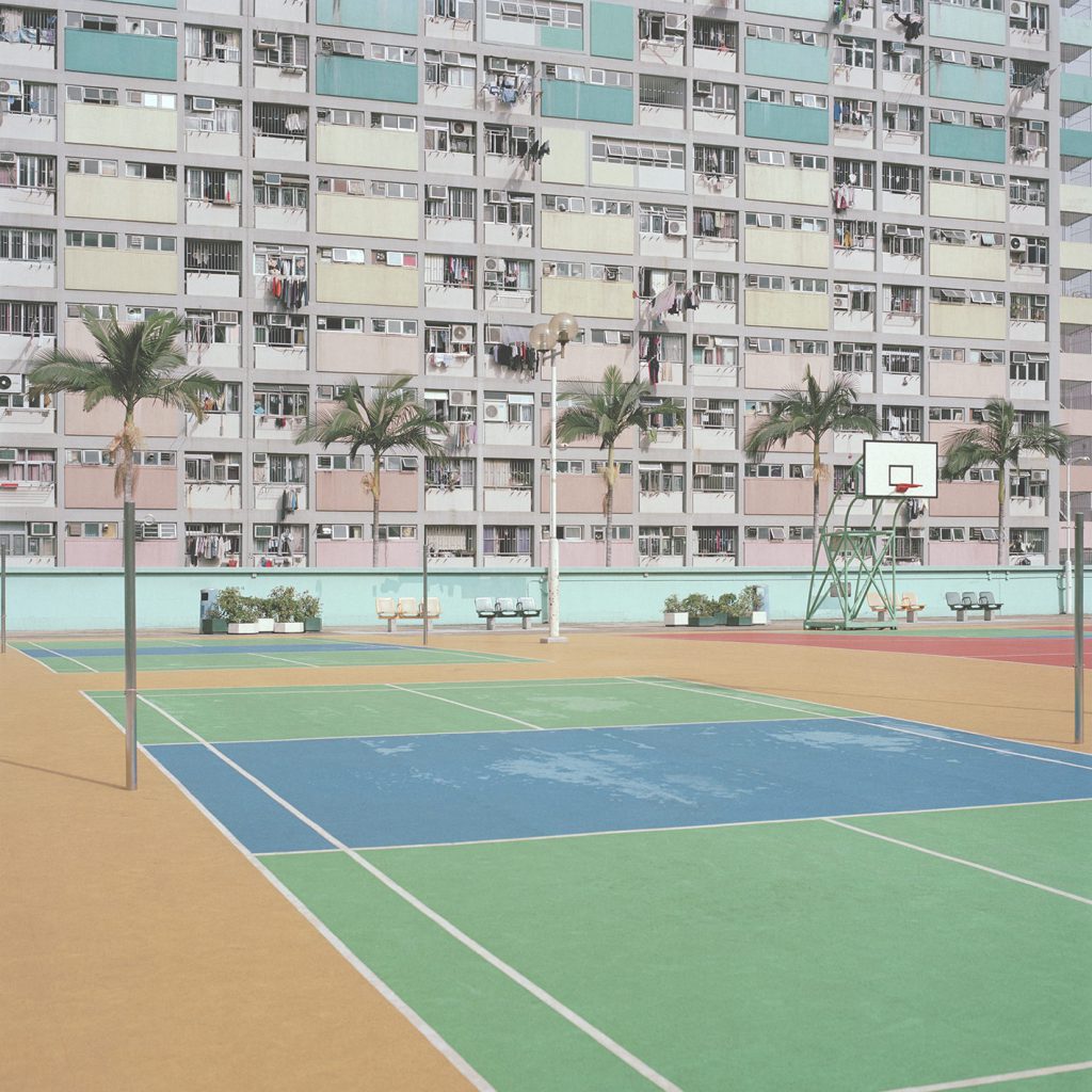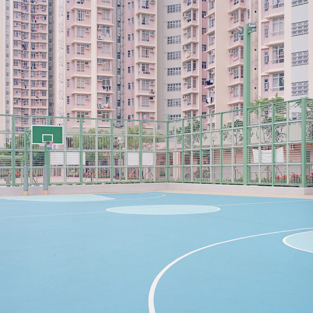 As Ward’s photographs show us, we easily sympathize with the treatment of such venues that are developed purely for our use and occasionally attract abuse. The only evidence of action you’ll see on many outdoor courts nowadays is the handy work of amateur graffiti ‘artists’. For many, the attraction to healthy recreational activities has been superseded by faster, louder viewing experiences. The humble local court has been neglected in preference to the stadium, which delivers sport as spectacle with staples like pre-match entertainment, merchandise and a bar. The surrounding buildings that feature in many of Ward’s images give us another clue as to where all the playing action has gone – indoors.