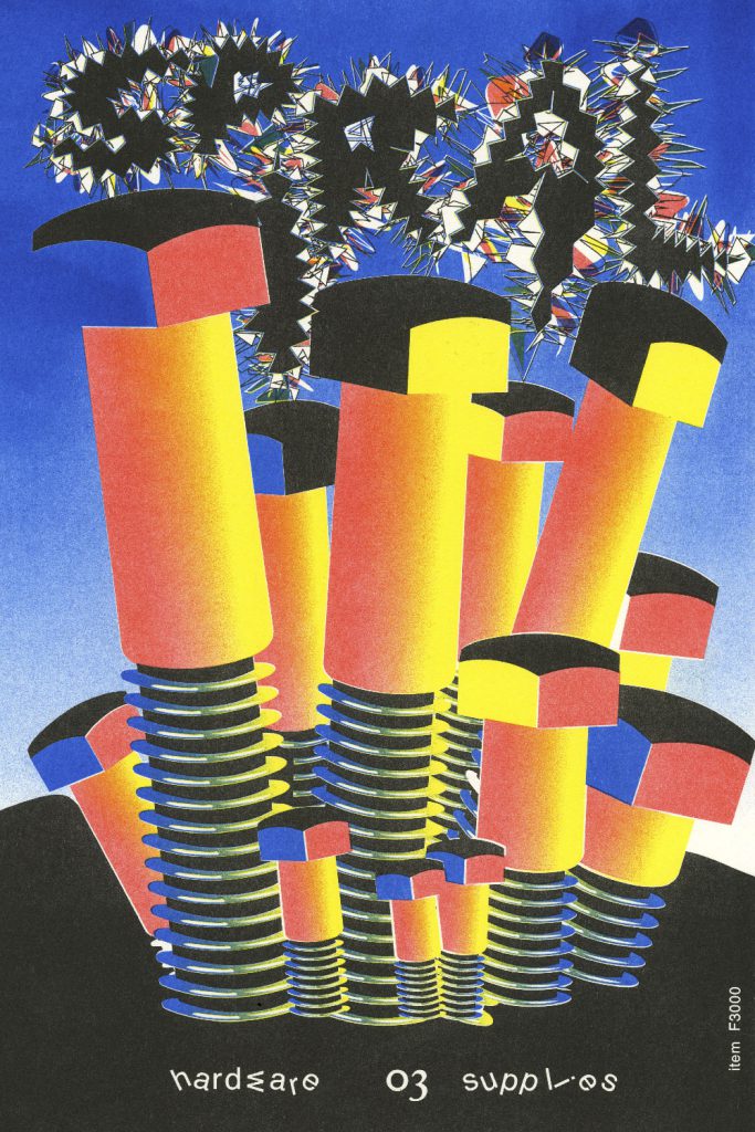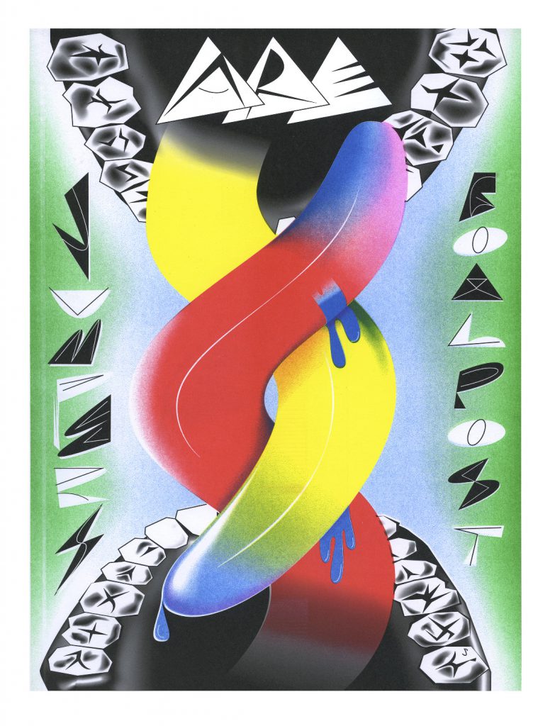 Nejc Prah is a Slovenian-born graphic designer with an MFA from Yale University School of Art. His printed and digital body of work reflects an irreverent application of both rigid and squiggly geometric shapes to his designs and animations. For his project, "Sandwich," he developed an online program through which a visitor can assemble a custom digital "sandwich." The sandwich-building components, for the most part, consist of bars of color that represent different ingredients: pink for ham, orange for peanut butter, fragmented green for pickles. He is a member of the Slovenian design and art collective, Ansambel.