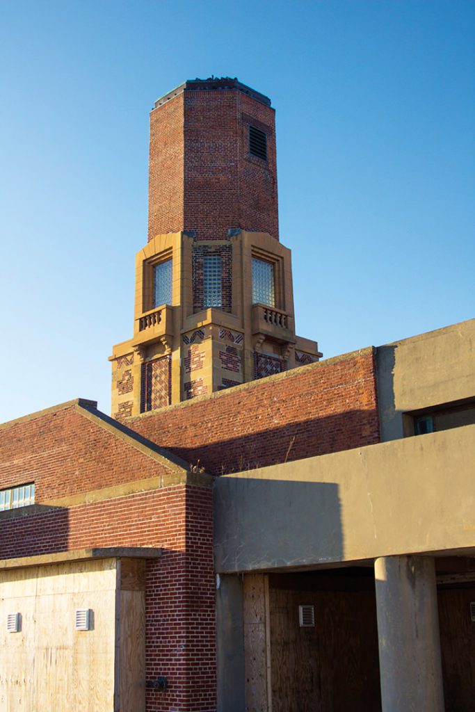 Now, many years later, the Jacob Riis Bathhouse still stands strong even though it has been neglected by the city. As we walked up to the 40,000 square foot structure, the enormity its presence hit us at once. The sunlight hits the decorative motifs from the watchtowers at just the right angle to make them pop off the building. Meanwhile, juxtaposing the towers, the concrete center-frame brings a futuristic look to the aesthetic vibe of the bathhouse, and in this way, it defies any unified categorization. It’s this complexity that gives it a uniquely American Art Deco aesthetic.