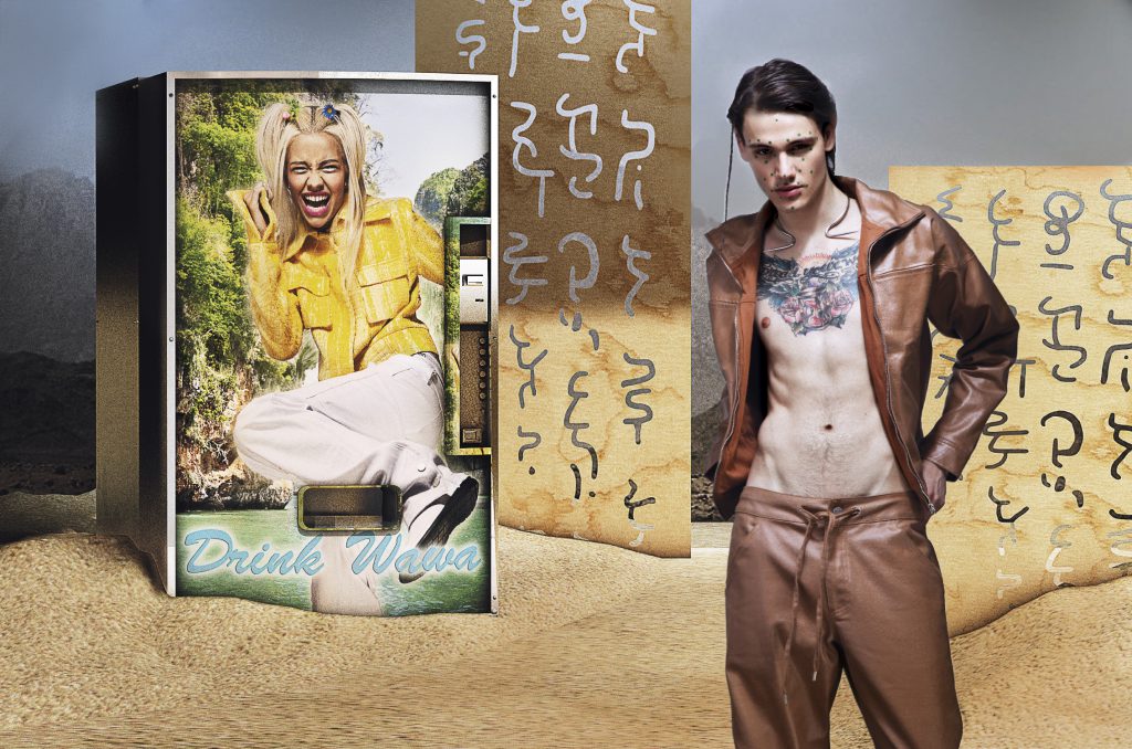Left: @vivkatrillion wearing jacket by Kim Shui, underwear by Calvin Klein pants by Telfar, shoe by Andrea JiapeiLi Right: @gusooo wearing Telfar with Chris Hanana choker