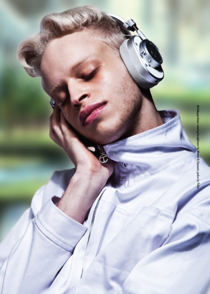 @alaingrpolanco wearing headphones by Master & Dynamic jacket by Telfar