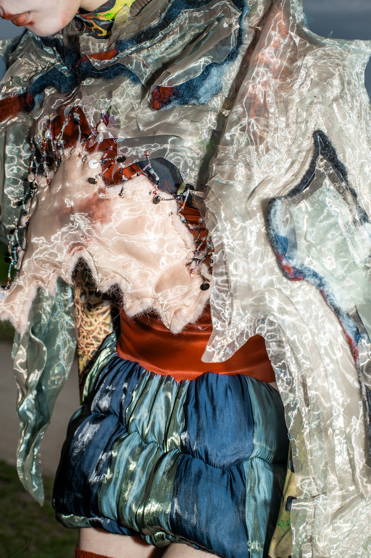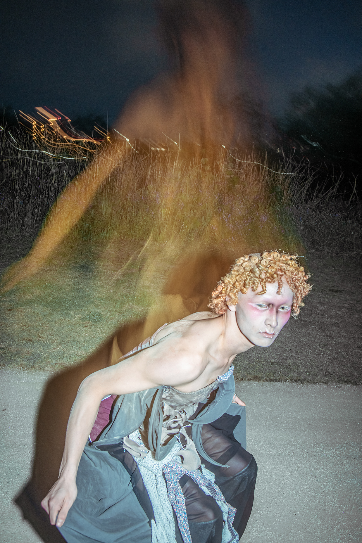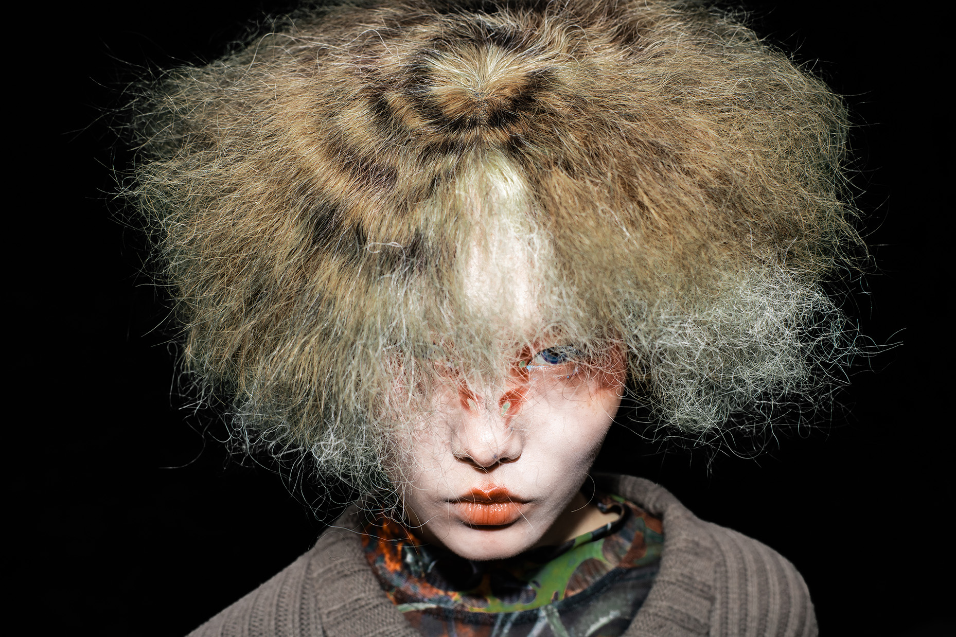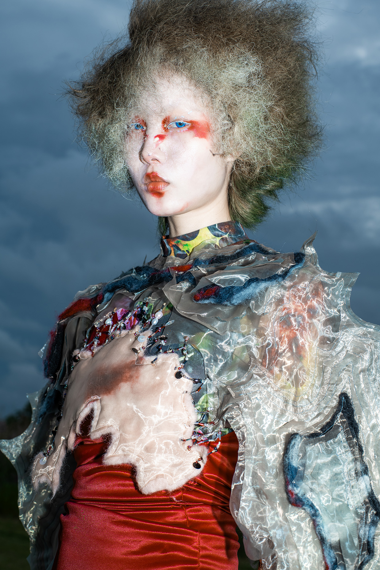 Artist Tomihiro's creature series, models were photographed in a performance inspired by the traditional Japanese art of dark dance, which presents an abstract visual expression of the process of gender bonding in post-humanist characters.